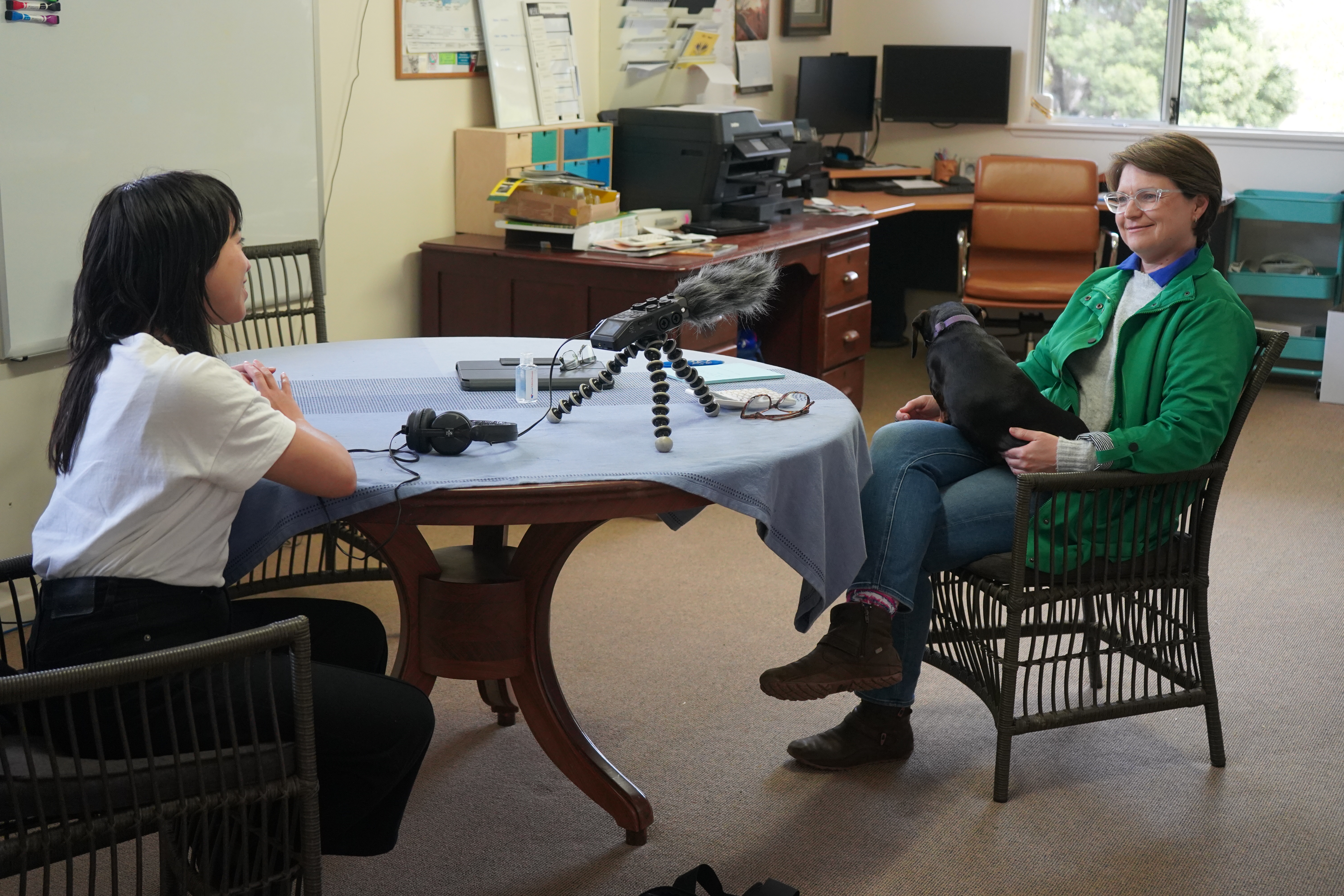 In conversation with farm manager Lisa Jeitz. Photo by Katie Witt.